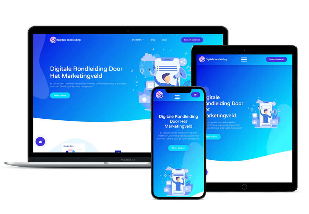 Een website op maat met responsive design. Als marketeer wordt er direct gekeken naar het doel van de website en daarop ingespeeld!